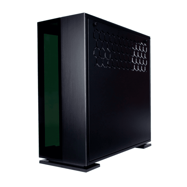 Esta fina estructura de aluminio contrasta perfectamente con el vidrio tintado de los paneles frontal y superior. Disfrute de esta exquisita combinación para exhibir una estética de sistema simple y, al mismo tiempo, elegante.
