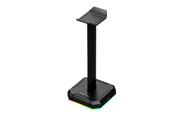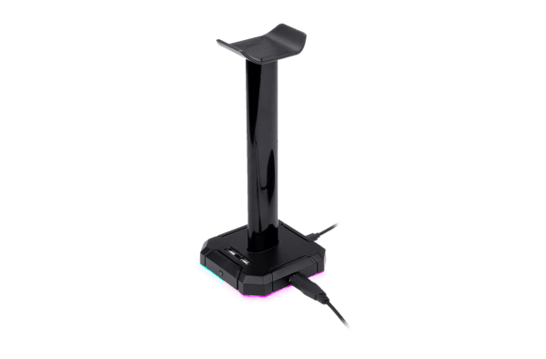 Soporte para auriculares y hub USB,construido con plástico ABS súper resistente y provisto de un cable mallado extraíble para la iluminación, el Scepter Pro es orden, estética y practicidad para tu escritorio.